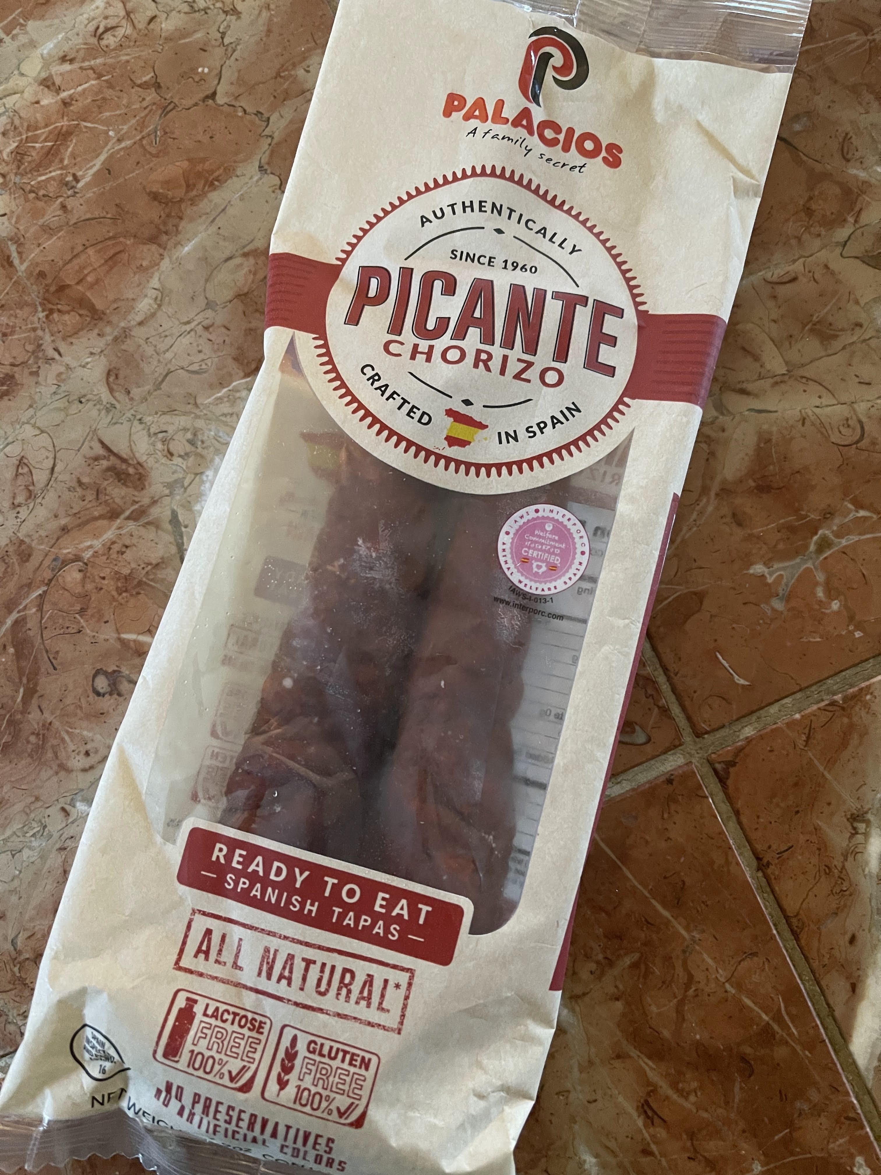 - 9 ounces Spanish chorizo, casing removed and sliced 1/4 inch, then each slice in quarters