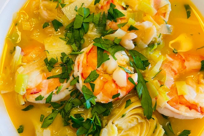 SHRIMP, BEAN AND ARTICHOKE STEW