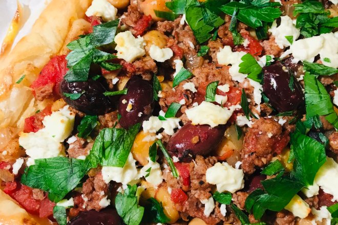 - 6 ounces brine-cured olives, pitted and drained (Manzanillo and or kalamata work well)