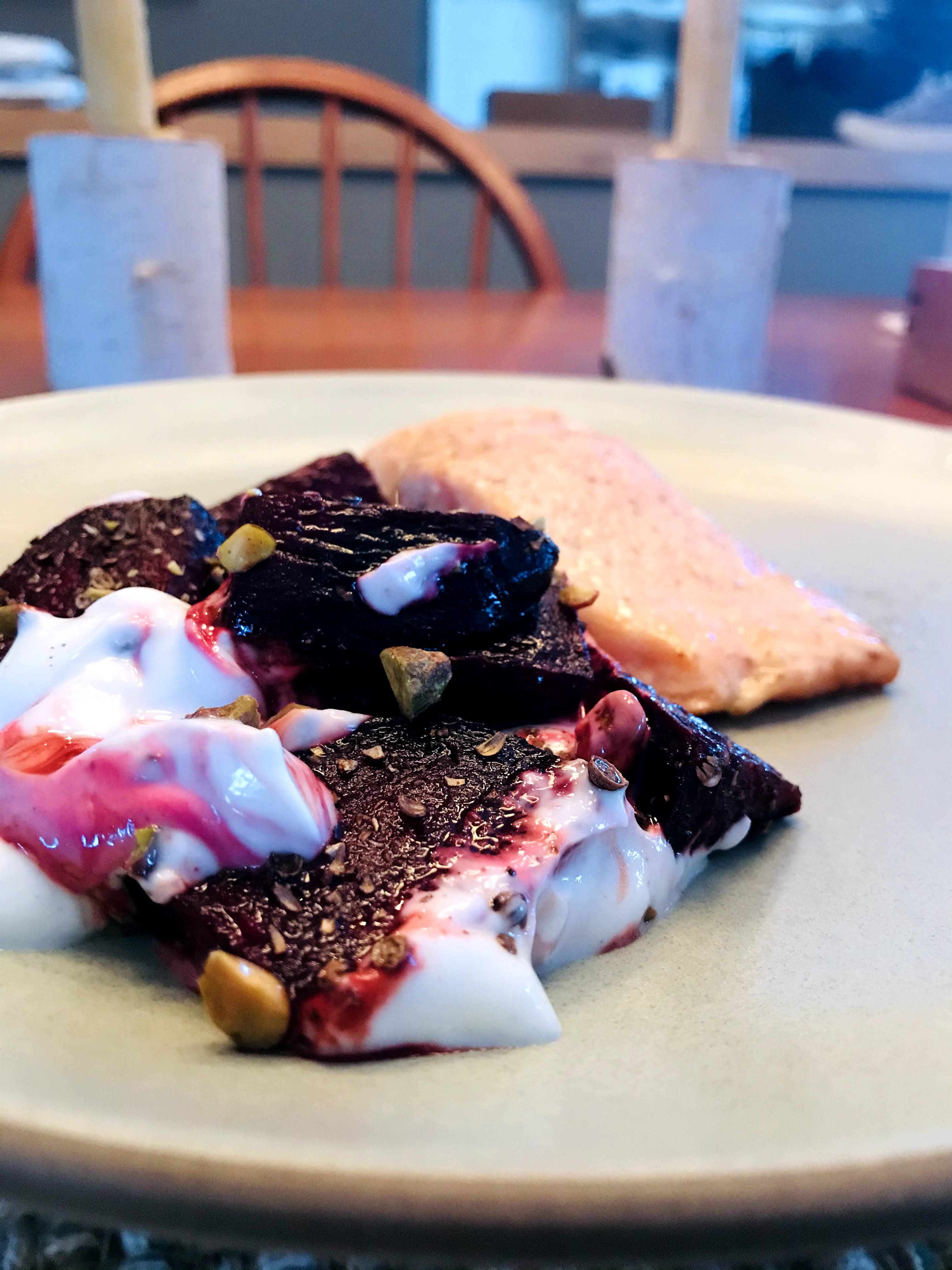ROASTED BEETS WITH YOGURT, PISTACHIOS & CORIANDER