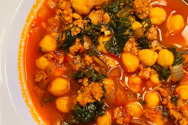 There are times after a busy day on the farm that I want to make something healthy yet packed with flavor. If I can get it to the table in 30 minutes, all the better. It also doesn’t hurt that it’s made with my favorite legume, the chickpea or garbanzo. Chickpeas go way beyond hummus, and are excellent in stews, soups, sides and salads, along with grains and pasta. They boast 11 grams of protein in 1 cup, and deliver the most nutrients of all other beans. Loaded with zinc and fiber, they pair well with cuisines from many cultures.