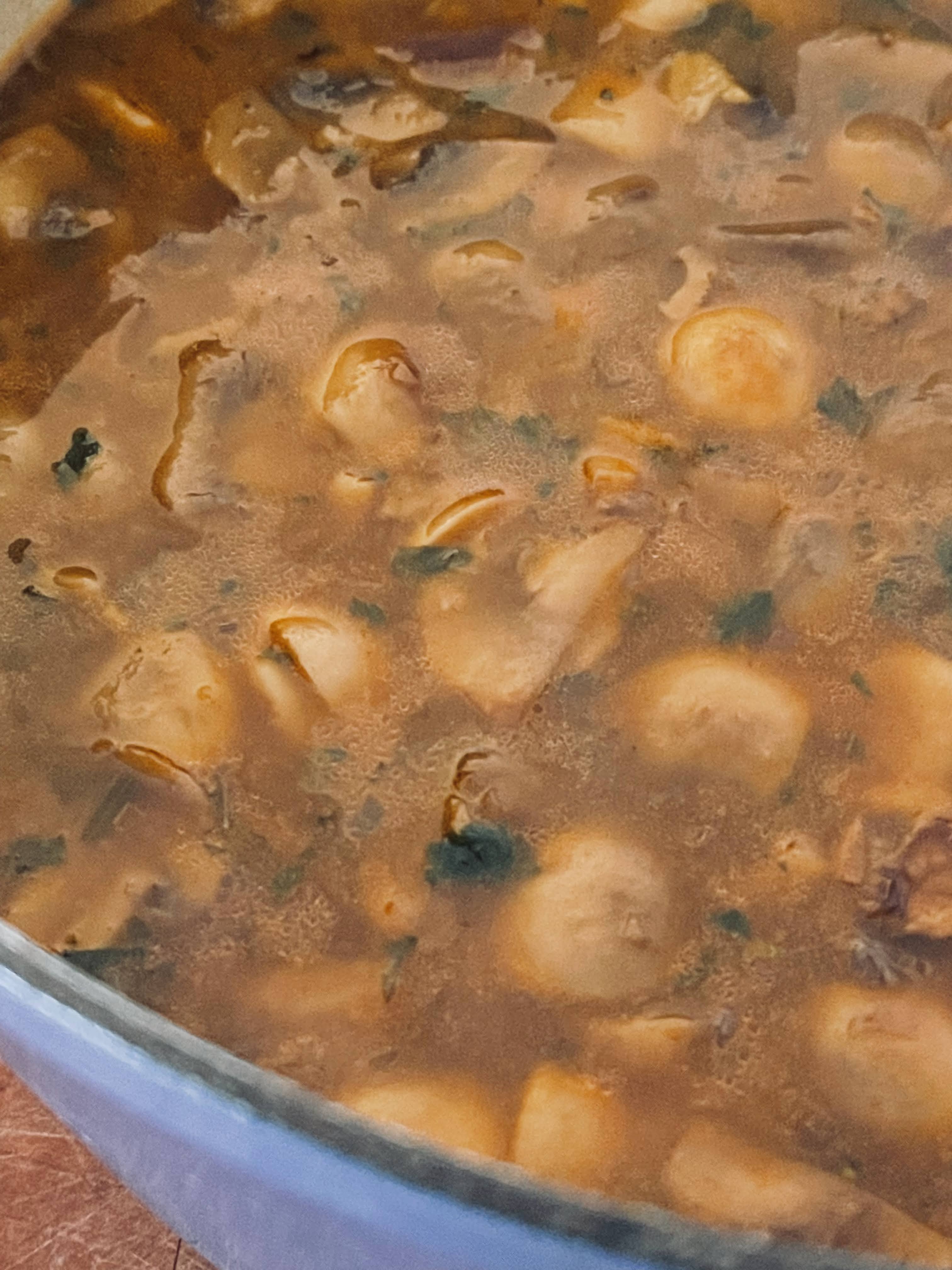 In the winter there is nothing better than soup, and this soup is soul-filling! There are many approaches to mushroom soup, and they will all give you satisfying results. This approach however, has a secret ingredient that not only thickens it with added protein, but gives it a rich and wonderful rustic feel. That ingredient is chickpea flour. What? That’s right, chickpea flour. Your are free to omit it, but you will end up with a much brothyer soup.