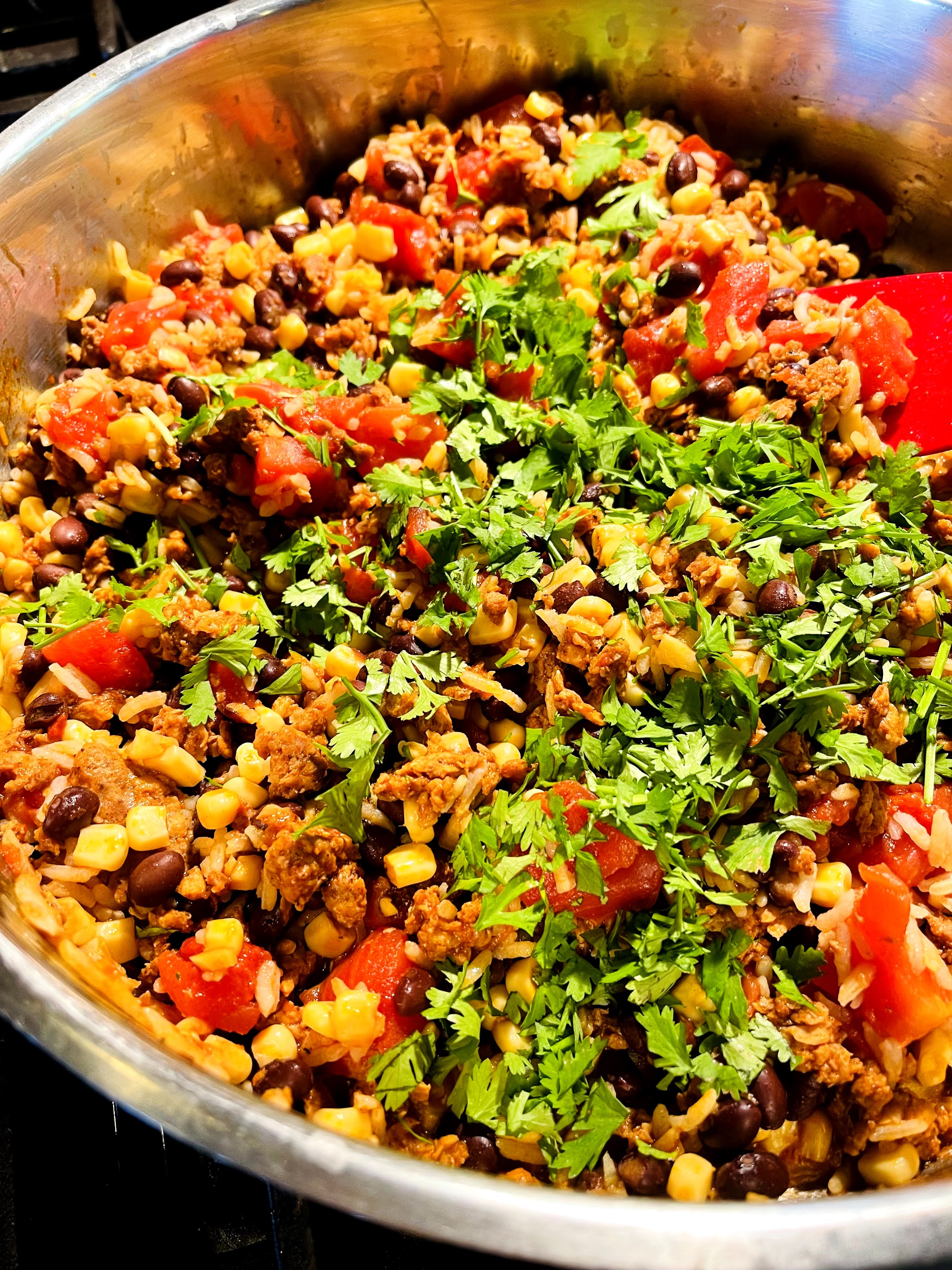 It sometimes surprises me when a standard recipe hasn’t come up on my radar. I’m one who doesn’t really like ground beef so I’ve never made stuffed peppers. I know, it seems odd to me too; most people eat them with enthusiasm. So when my wife asked me to make them, I wondered what I needed to change so I would be enthusiastic too? I immediately swapped out the ground beef for ground lamb. I also wanted them to be visually appealing, not buried under a bunch of cheese making the pepper unidentifiable. So instead of covering them with cheese I incorporated feta in the meat mixture, giving them a Greek theme. I gave them a little whimsy by standing them up with little hats, instead of cutting them in half and laying them down. The final product turned out so good I will have them on a regular rotation. Who knew? You can teach an old dog new tricks.